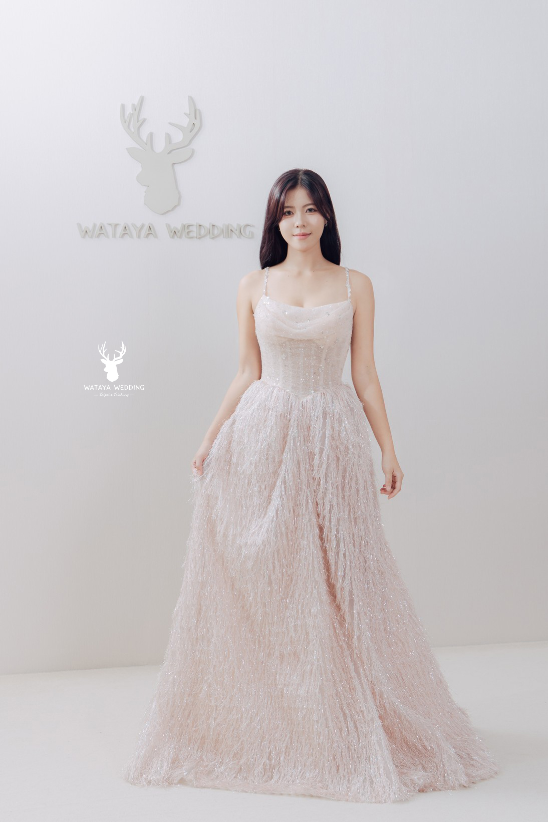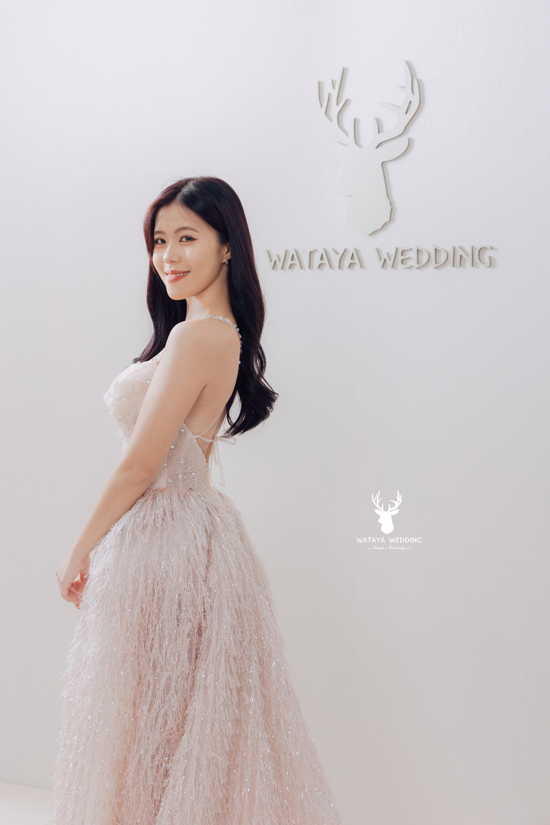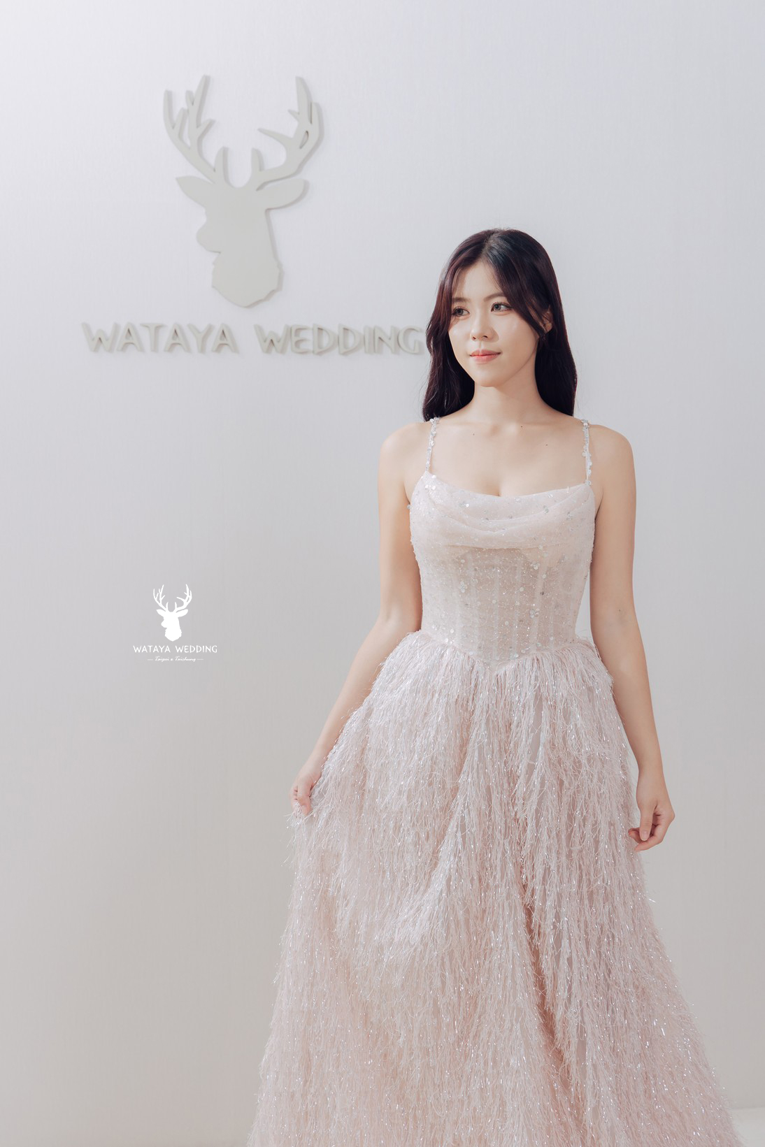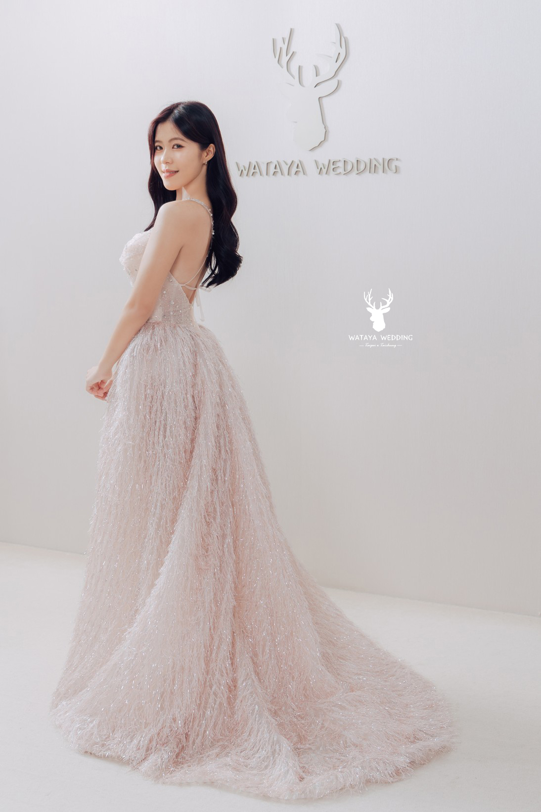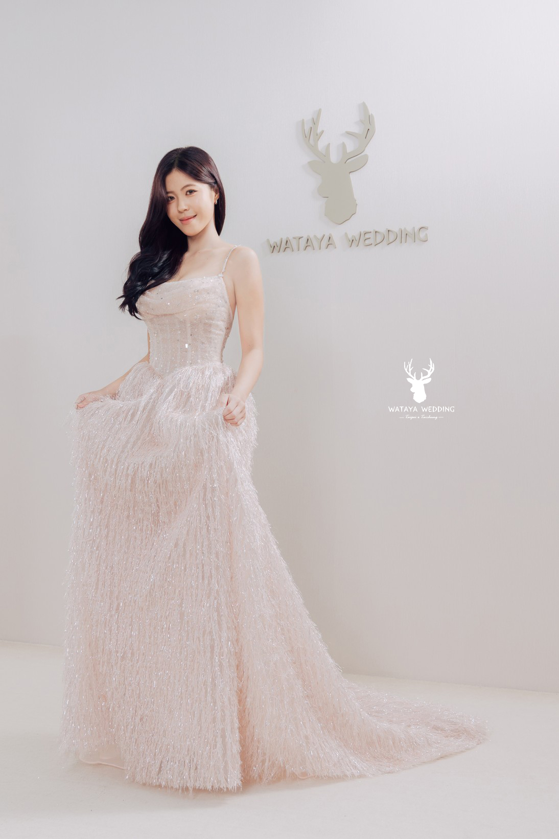 【綿谷品牌婚紗】這件禮服將溫柔的粉色與細緻的亮片層層堆疊, 就像在浪漫的櫻花雨中漫步, 自帶仙氣氛圍。
